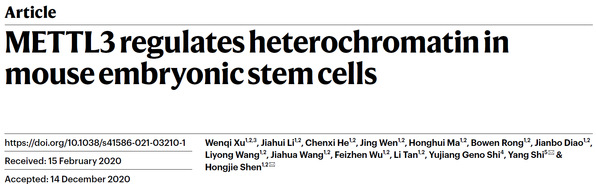 复旦大学生物医学研究院表观团队揭示METTL3调控小鼠胚胎干细胞异染色质形成机制 成果登上《自然...