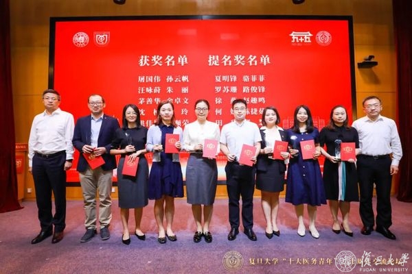 随后,医学院领导和支持单位领导共同为第十届复旦大学十大医务青年和提名奖获得者颁奖。“时代的责任赋予青年,时代的光荣属于青年。”在新的起点上,医务青年必将传承上医精神、续写上医辉煌。