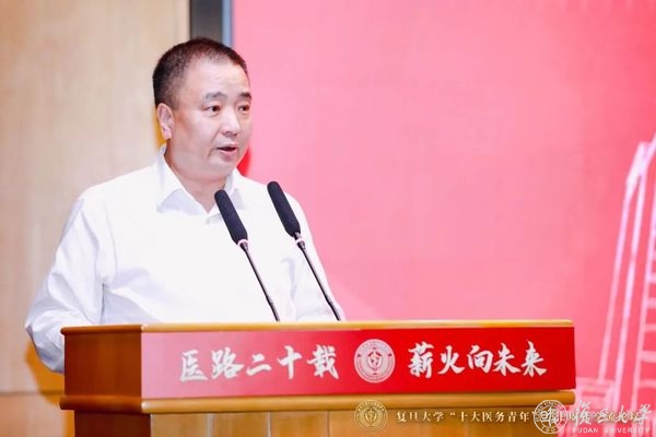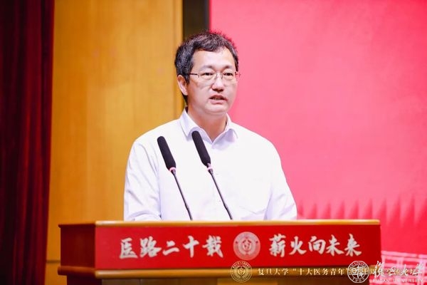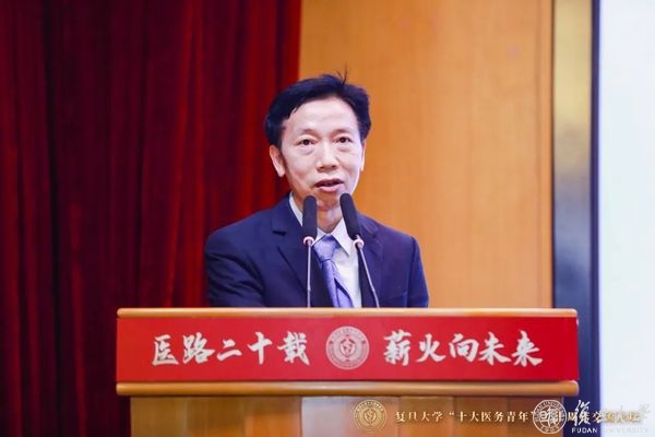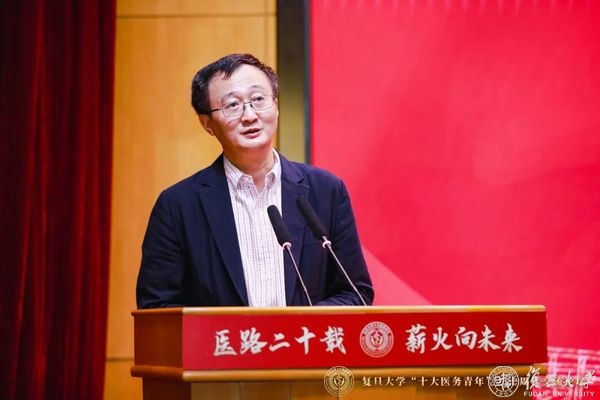 前辈的寄语是最好的指引。现场,首届复旦大学“十大医务青年”获奖者——中国科学院院士、复旦大学附属中山医院心内科主任葛均波,复旦大学附属眼耳鼻喉科医院院长、眼科主任周行涛分别通过线上线下进行专题分享,两位医学界前辈讲述自己从医的心路历程,为医务青年们送上殷殷寄语。