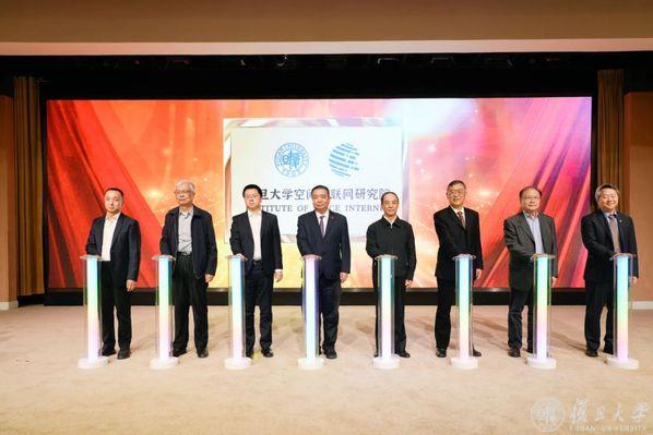 金力、程鹏、屈炜、周磊、王建宇、褚君浩、陈焱、复旦大学空间互联网研究院院长高跃为研究院揭牌。金力、程鹏、屈炜在揭牌仪式上致辞,国际电信联盟代表常若艇发来视频致辞。