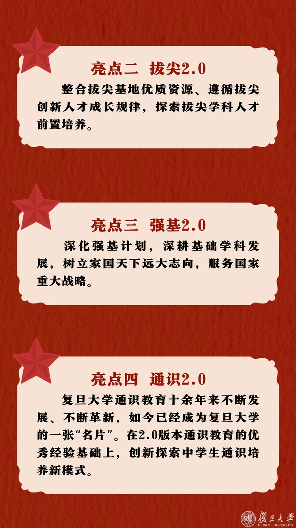 今年三月,复旦大学将开展面向上海市所有高中高一年级在读学生的“周末学堂——复旦大学拔尖学科高中先修计划”。该项目将为高中生们提供自由选择、自主探索的创新教育机会,培养基础学科创新人才,前置优质教育资源,助力学生综合素质全面提升。