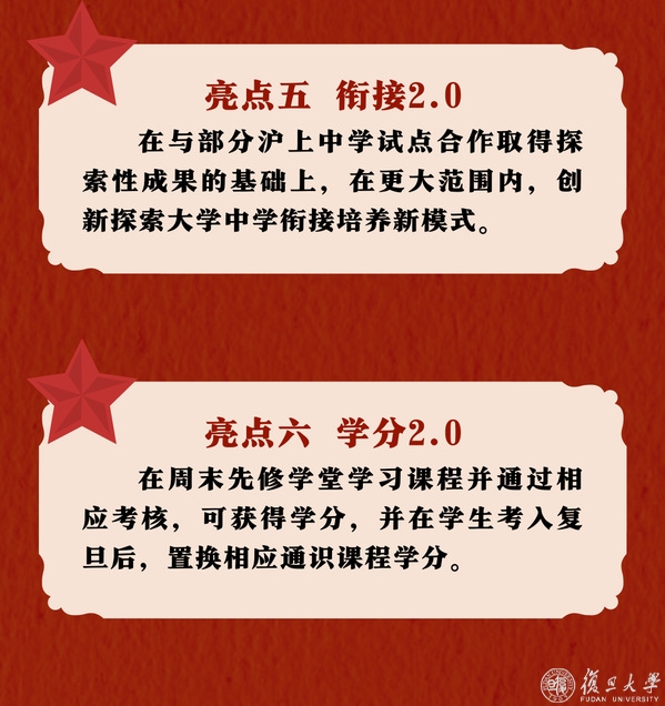 为实现周末先修学堂课程与大学本科课程有效衔接联动,学生在周末先修学堂学习课程并通过相应考核获得的学分,在学生进入复旦后,可置换相应通识课程学分。