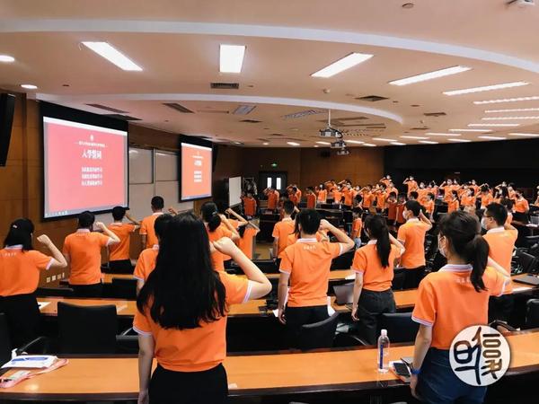 江湾校区分会场,同学观看开学典礼直播