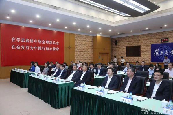 复旦大学党委书记裘新,校长、中国科学院院士金力,副校长姜育刚;徐汇区委书记曹立强,区委副书记、代理区长王华,副区长王志华;中智集团党委书记、董事长卜玉龙,中智股份党委书记、董事、副总经理李双,中智股份党委委员、副总经理兼董事会秘书陶骏见证区校企三方合作协议签署。复旦大学常务副校长许征,徐汇区委常委、组织部部长、区委党校校长刘琪,中智股份党委副书记、董事、总经理单为民签订区校企三方合作协议。