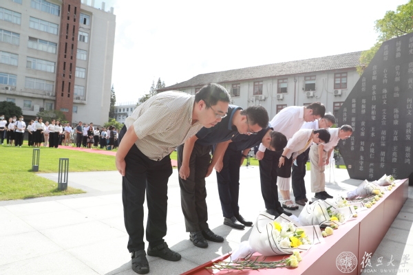 9月30日是我国第八个烈士纪念日,上午,复旦大学全体校领导、烈士家属代表、校党委委员、纪委委员代表、校党代会、教代会代表、机关部处、二级院系、实体运行科研机构、群团组织、民主党派负责人代表、师生代表等120余人,怀着崇敬之情,来到今年4月落成的复旦大学烈士雕塑和纪念广场,向英雄敬献花篮,缅怀革命先烈,学习英烈事迹,铭记英烈功勋,传承红色基因,汲取走好新时代长征路的精神力量。