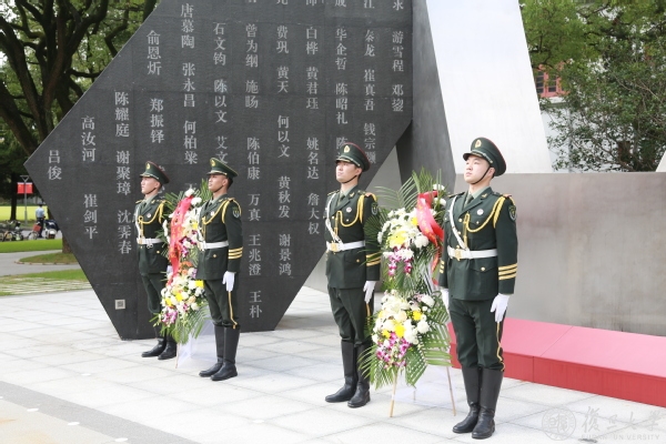 秋日的晴空下,复旦烈士雕塑和纪念广场松柏苍翠、庄严肃穆,镌刻着52位复旦英烈姓名的烈士雕塑高耸傲立、熠熠生辉。校党委书记焦扬,校长许宁生,金力、袁正宏、许征、周亚明、陈志敏、张人禾、徐雷等学校党政领导班子成员和各级部门、院系师生代表,步行至烈士雕塑和纪念广场,参加烈士纪念日主题活动。仪式由校党委副书记许征主持。