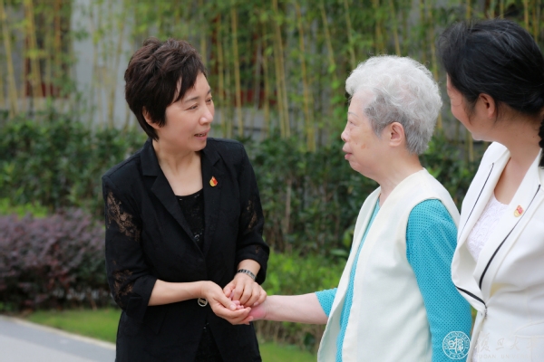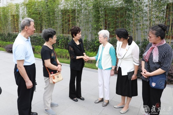 费巩烈士是复旦大学政治学系1923级校友,1945年因反对国民党反动势力而遭绑架遇害。他的女儿费莹如年已80岁,头发全白。焦扬握着她的手,特别关心她的生活起居情况,嘱咐来自国际关系与公共事务学院党员志愿服务队的队员多陪伴老人、多帮助烈士家属。