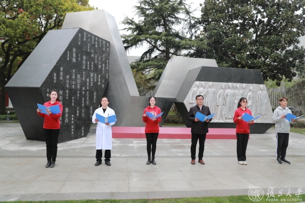 烈士雕塑揭幕同时,复旦大学师生“党史故事我来讲,红色精神我来传”接力活动也同步开启。朗诵的既有教授郑召利、张义,也有望道班学生代表,费巩、王朴、胡其芬等烈士所在院系学生代表。师生们现场演绎一堂生动的情景、情境党史课。
