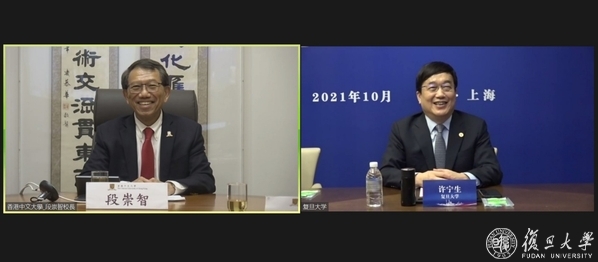 随后,许宁生与香港科技大学校长史维线上会谈。许宁生指出,复旦大学在哲学与历史学等人文社科领域有着良好的基础,希望通过与香港科技大学的合作在服务国家战略决策中,进一步推进理论创新建设,这也是复旦大学“十四五”发展规划中的新增长点。希望以粤港澳大湾区精准医学研究院为载体,与香港科技大学共享科技成果,展开更多合作,利用先进科技成果,引导国内外精准医学相关科研成果转化,服务粤港澳大湾区的国家战略。