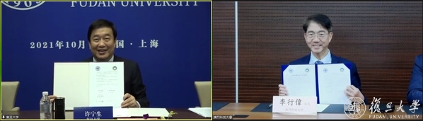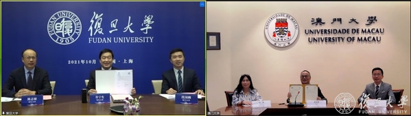双方在线签署了《复旦大学与澳门大学战略合作框架协议》。根据协议,复旦大学将与澳门大学建立战略合作关系,设立“两校支持粤港澳大湾区建设联席会议”机制,每年定期举行联席会议,积极推进双方合作交流向纵深发展。以金融专业为试点,联合开展双学位项目,以经济、金融、公共卫生、微电子、人工智能和脑科学等领域为重点,加强各学科领域的学术及科研合作。复旦大学将依托“珠海复旦创新研究院”与澳门大学联合申请国家及粤港澳大湾区的重大科技专项、基础研究项目,进行科技成果转化。澳门大学亚太经济与管理研究所将成为“教育部人文社会科学重点研究基地——复旦大学世界经济研究所”的伙伴基地,进一步加强双方在人文社科领域的学术及科研合作。