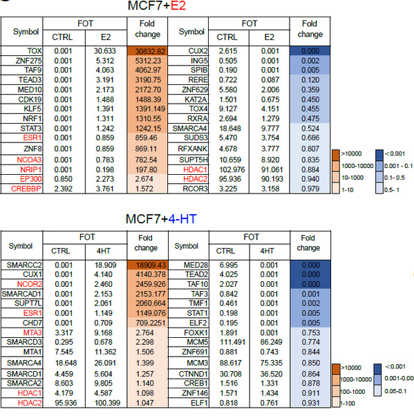 图4. ATAC-MS检测E2、4HT刺激应答转录共调节因子复合物