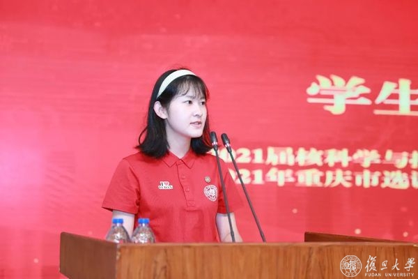 出征仪式上,核科学与技术系2021届本科毕业生、重庆市选调生杨蓉作为代表发言。在她看来,复旦给想要报考选调生的同学们提供了良好平台和丰富资源。一次暑期实习实践活动在她心里埋下了成为选调生的种子,在基层就业服务协会的经历使她坚定了初心。“到基层去,到祖国最需要的地方去,是实现自我价值的一条理想路径,”她说,“能将个人理想与国家发展相结合,是一件值得快乐而自豪的事。”