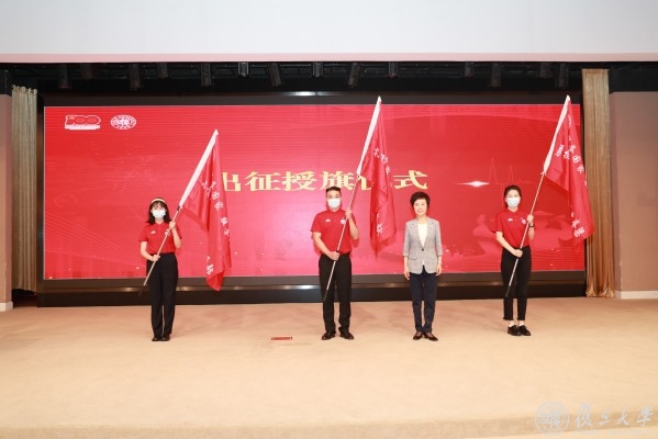 授旗出征环节,尹冬梅、徐军分批为各省(区、市)的选调生、专招生代表授旗。焦扬为即将赴西部、基层、国家重点单位就业的毕业生代表授出征大旗。
