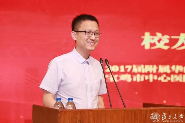 作为校友代表,2017届复旦大学附属华山医院博士研究生、宝鸡市中心医院副院长周峰分享了自己读博期间和基层工作的经历和感受。在基层,他用实干解决问题,与母校联合培养人才,用科研思维和方法大展身手,积极履行参政议政职责,参与脱贫攻坚战。他寄语学弟学妹,不管走到哪里,都要记得“团结、服务、牺牲”的复旦精神,用信念、用智慧、用实干,不畏艰难险阻,勇担时代使命。
