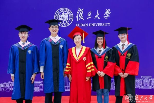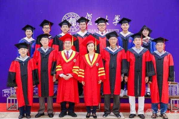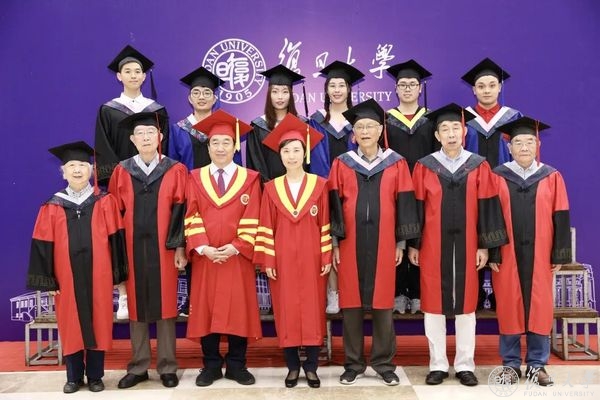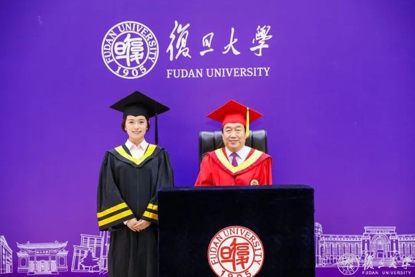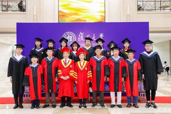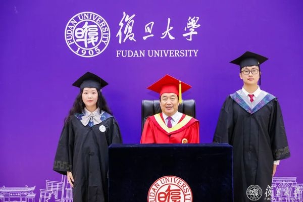 复旦大学党委书记焦扬为毕业生们拨穗并合影