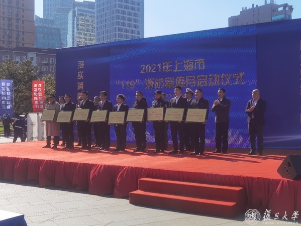 11月9日上午,上海市消防安全专业委员会在市自然博物馆外广场举办“2021年度上海市‘119’消防宣传月启动仪式”,会上,复旦大学保卫处被评为“2021年度上海市消防安全工作先进集体”。
