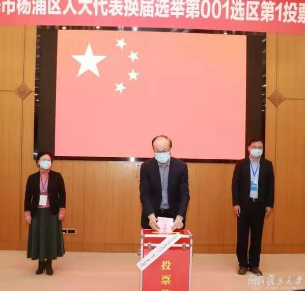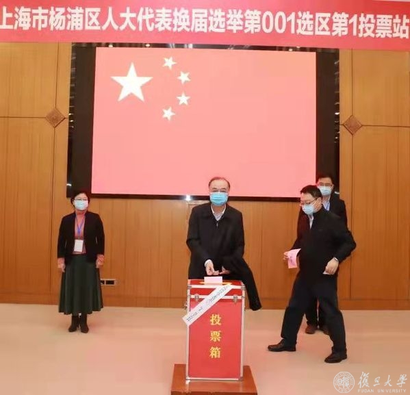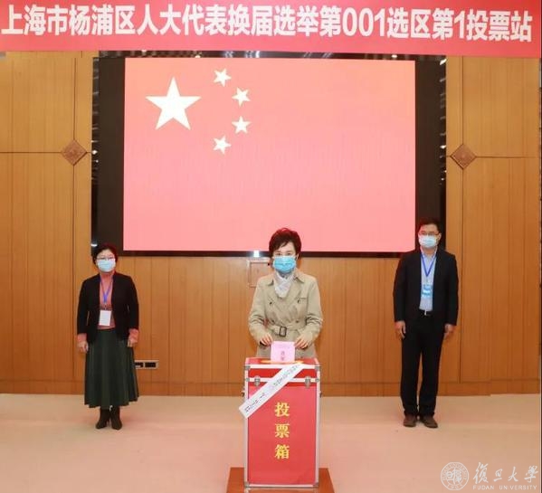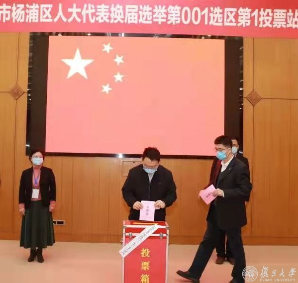 上午10时许,焦扬、许征、张志勇、尹冬梅、金海燕、周亚明、陈志敏、张人禾、徐雷等校党政领导前往设置在复旦大学邯郸校区的上海市杨浦区人大代表换届选举第001选区第1投票站,袁正宏、徐军等学校及上海医学院党政领导参加上海市徐汇区人大代表换届选举第137选区第一选举大会,投下庄严一票。