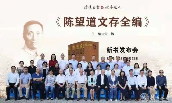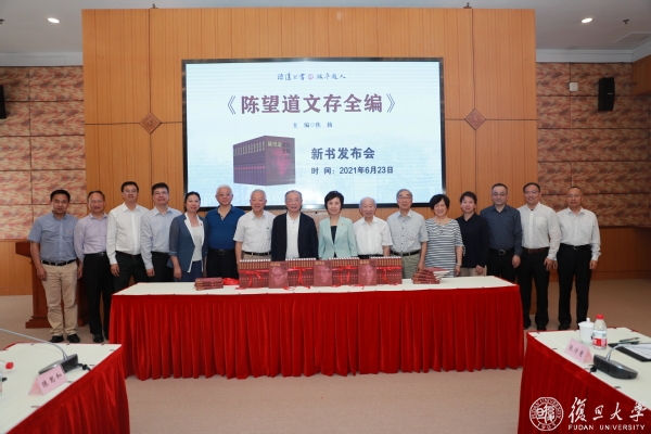 校党委书记、《陈望道文存全编》主编焦扬,第十届上海市政协副主席、上海市教育发展基金会理事长、本书顾问委员会委员王荣华,复旦大学原党委书记、新闻学院教授、本书顾问委员会委员秦绍德,信息科学与工程学院教授、陈望道之子陈振新,国际文化交流学院教授、陈望道学生陈光磊,文科资深教授、校图书馆馆长陈思和,复旦大学出版社党委书记、董事长严峰共同为新书揭幕。校党委副书记许征主持此次活动。出席活动的还有复旦大学教师、陈望道儿媳朱良玉,上海市教育发展基金会秘书长张宏莲等。