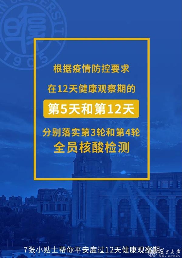按照市防控办要求,在江湾校区闭环管理的学生和教职工,从11月27日至12月8日实行12天健康观察。