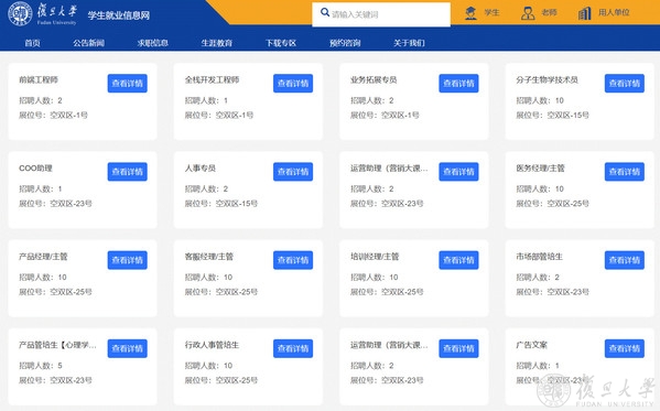 学校相关部门联合优秀校友企业资源,举办复旦大学校友创业企业专场线上双选会,组织复旦菁英校友云课堂。