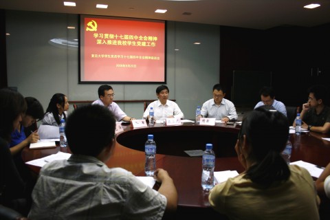 2009年9月23日,复旦大学学生党员学习党的十七届四中全会精神座谈会在光华楼西主楼1011会议室举行。校党委副书记陈立民出席会议,与各院系学生党支部书记代表、青年复旦学员代表、邓研会骨干成员代表、毕业生党员代表、新生党员代表等40余名学生党员畅谈了学习全会精神的体会与思考。校党委组织部、学工部的负责同志以及部分院系党委书记、副书记参与了座谈交流。