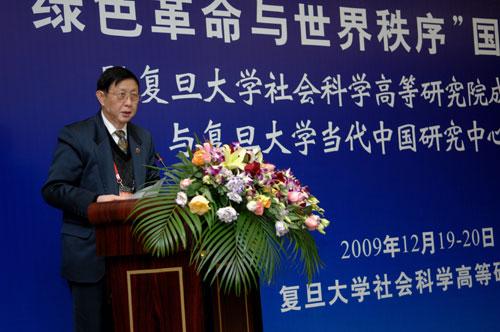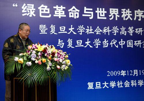 新闻中心讯 2009年12月19日上午,由复旦大学社会科学高等研究院主办的“绿色革命与世界秩序”国际学术论坛在复旦隆重开幕。全国政协人口资源环境委员会副主任、中国环境科学学会理事长王玉庆,上海市委宣传部副部长潘世伟,复旦大学党委书记秦绍德,联合国大学副校长戈文丹•帕拉伊尔以及日本神户大学副校长中村千春等中外贵宾出席了当天的开幕式并致辞。