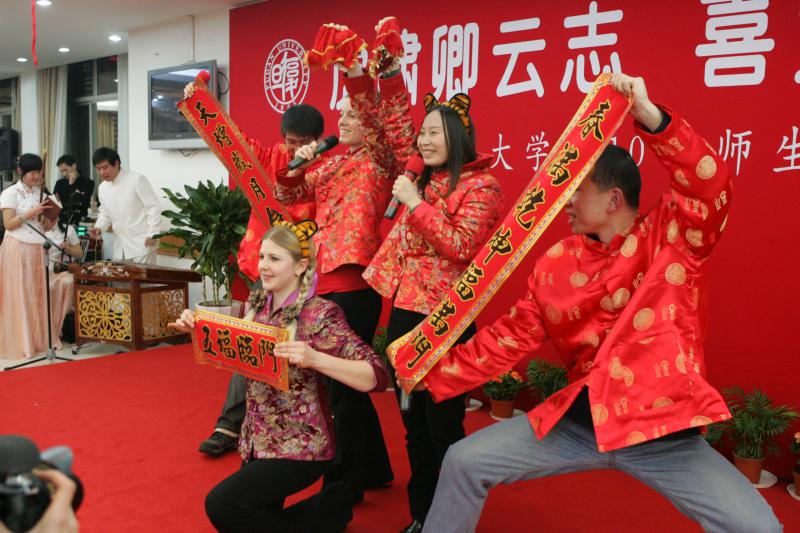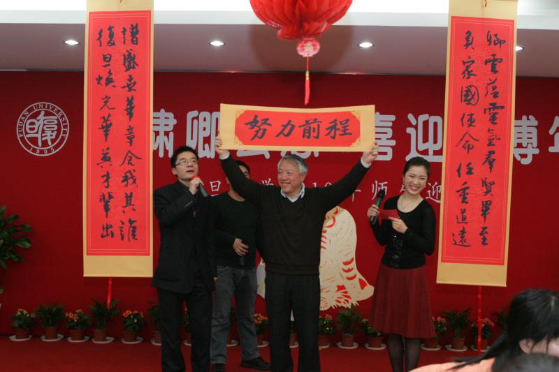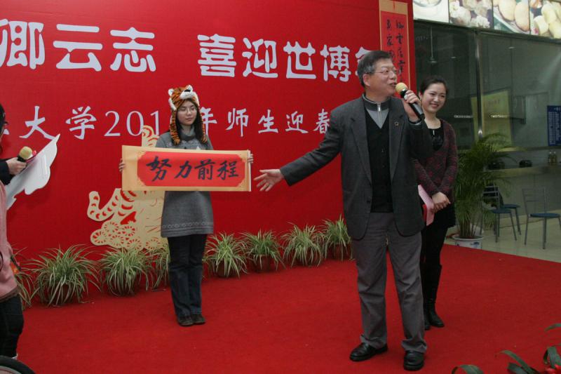 2010年2月8日,我校2010年师生迎春会在邯郸路校区旦苑餐厅隆重举行。上海市教卫党委书记李宣海、上海市教卫党委副秘书长谢一龙、我校党委书记秦绍德、副校长陈晓漫、许征以及学校相关部处、院系领导、院系教师代表和留校过年的500余位中外学生欢聚一堂,喜迎虎年新春佳节的到来。