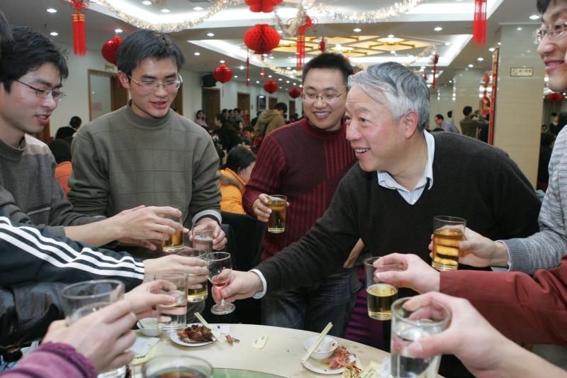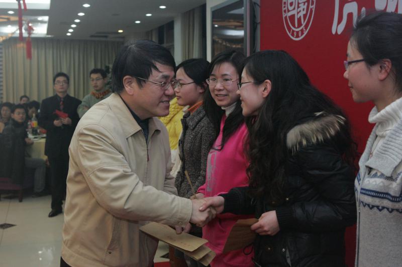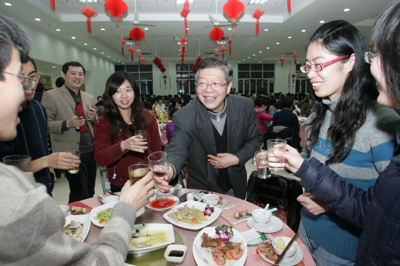 杨玉良校长代表学校致祝酒词。他向留在学校过年的同学和老师们致以新年的问候,并向将在春节期间工作在医疗一线的医务工作者、老师和学生们表示诚挚的感谢。杨校长还祝愿广大师生在即将到来的虎年,学习进步,工作顺利,以优异的成绩和良好的精神面貌喜迎上海世博会和复旦大学105周年校庆的到来。