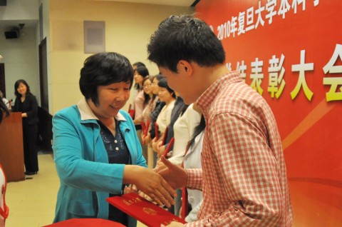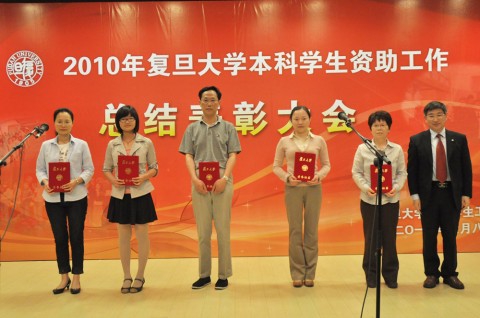 在本次大会上,我校共表彰了2009年在学生资助工作中取得突出成绩的10个先进集体、11位先进个人及6位本科生助学成才家园的优秀指导教师。数学学院的刘金华老师和护理学院的林岑老师分别作为获奖集体和个人代表做了主题发言。今年,学校还第一次向11个资助单位颁发了复旦大学学生资助工作特别贡献奖,以感谢和表彰他们一直以来对我校学生资助工作的大力支持。