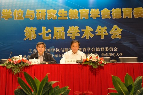 9月27日,由中国学位与研究生教育学会德育委员会主办,我校牵头承办的中国学位与研究生教育学会德育委员会第七届学术年会在我校举行。校党委书记秦绍德,教育部思政司司长杨振斌,国务院学位办副主任李军,德育委员会主任、北京科技大学副校长张跃,我校党委副书记陈立民,上海交通大学党委副书记徐飞和华东师范大学党委副书记林在勇等出席年会。来自北京大学、清华大学、南京大学、浙江大学等100多所高校的200多位研究生思想政治教育工作负责同志和德育研究论文获奖作者参加了本次年会。我校各院系学生工作首要负责人、研工组长和部分研究生辅导员听取了主论坛和专家主题报告。