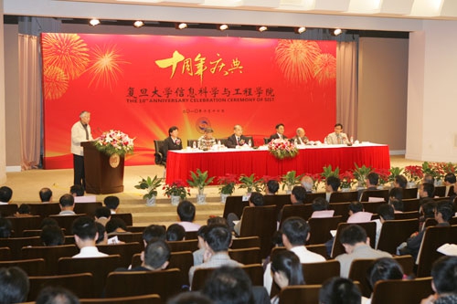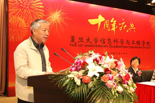 校党委书记秦绍德在庆典仪式上发表重要讲话。他对信息学院的未来发展提出四点期望:既能站在国际学术的前沿,又能主动承担国家战略部署,进一步优化学科布局和结构;进一步加强师资队伍建设,坚定不移地引进国际一流的领军人才,有计划地对内部人员进行战略安排,培养自己的人才;进一步提高培养人才质量,坚持人才培养的根基不动摇,坚持培养素质全面的创新人才不动摇;根据自己多学科的优势,进行学科交叉,大力发展工科与文科、理科和医科的交叉研究,进一步加快国际化步伐。
