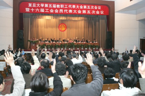 经大会全体代表投票表决,本次教代会通过了《复旦大学教职工处分条例(试行)》。会议还以举手表决的方式通过了大会决议。