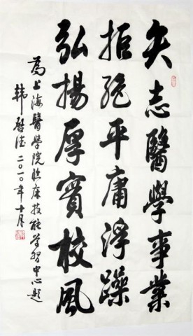 近日,十一届全国人大常委会副委员长、九三学社中央主席、中国科学院院士,复旦大学上海医学院(原上海第一医学院)68届校友韩启德于百忙中,欣然为复旦大学上海医学院临床技能学习中心题名并题词:“矢志医学事业,拒绝平庸浮躁,弘扬厚实校风”。题词字里行间饱含着他心系母校的情怀,以及对学弟学妹们的谆谆教诲和殷切希望,催人奋进。