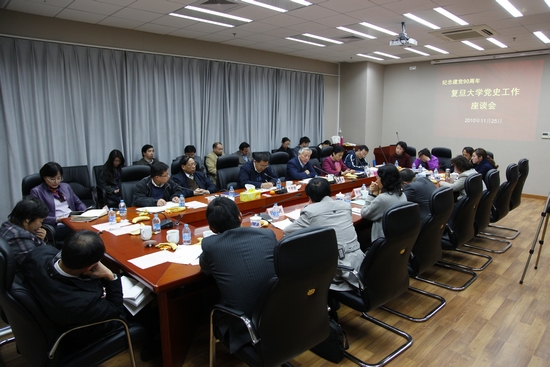新闻中心讯 为迎接建党90周年、落实中央党史工作会议精神,11月25日,我校在光华楼举行党史工作座谈会。校党委书记秦绍德出席并讲话。相关部处负责人和分党委书记、教师代表参加会议。