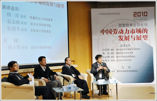 本次国际会议还特别设立了“政策圆桌”,邀请清华大学白重恩教授、香港中文大学杨涛教授、多伦多大学朱晓东教授与复旦大学经济学院院长袁志刚教授一起,就中国劳动力市场的发展和未来进行了深入探讨。