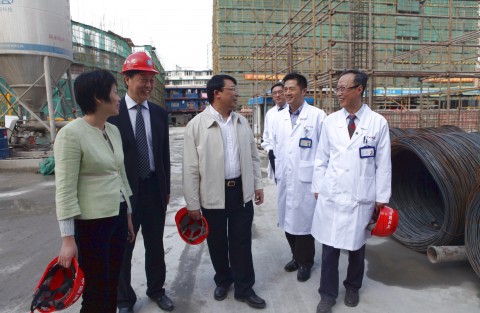 在察看中山医院东院建设工地时,朱之文告诉王玉琦、秦新裕,站在“自己”的土地上,兴奋感、亲切感油然而生,相信中山医院的同志们一定会为新院区的建设成就感到自豪。第一组全体成员还“先睹为快”,察看了已经完成土建工程、连接中山医院东西两个院区的地下隧道。
