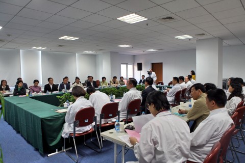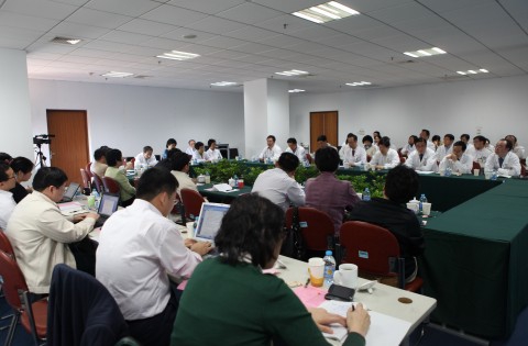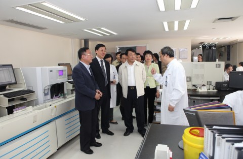 中山医院王玉琦院长就医院发展概况、学科建设、研究机构、临床教学、医疗科研和信息化管理等工作情况向调研组作了汇报,介绍了医院“十二五”发展规划。随后,第一组全体成员在中山医院党委秦新裕书记的陪同下,先后察看了中山医院静脉配置中心、内窥镜中心、检验科、干部病房,以及放射科文化廊、国家医疗队宣传展等。