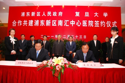12月23日,复旦大学与浦东新区人民政府合作共建浦东新区南汇中心医院签约仪式暨复旦大学附属浦东新区南汇中心医院(筹)揭牌仪式在浦东新区政府隆重举行。