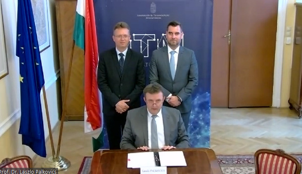 匈牙利创新技术部部长帕科维奇 • 拉斯洛(中)、创新技术部部长特别顾问科瓦齐奇 • 伊万(右)、副国务秘书洪科 • 鲍拉兹(左)