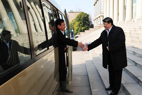 朱之文代表学校对浦东干部学院领导的来访表示热烈欢迎,对浦东干部学院给予我校发展的支持表示衷心感谢。朱之文向客人简要介绍了学校过去一年的主要工作和2012年的工作重点,并就深化两校合作关系发表了看法。