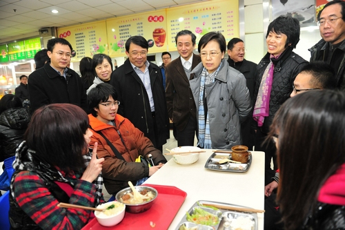 新闻中心讯 2月28日中午,新学期伊始,教育部副部长鲁昕一行到复旦大学视察学生食堂,对从饭菜质量、价格、卫生安全到工作人员的服务质量等各方面进行了全面检查。校党委书记朱之文,副书记王小林,副校长许征、陆昉等接待了鲁昕一行。上海市教育委员会主任薛明扬陪同视察。