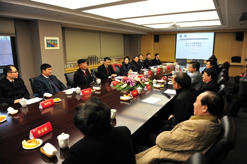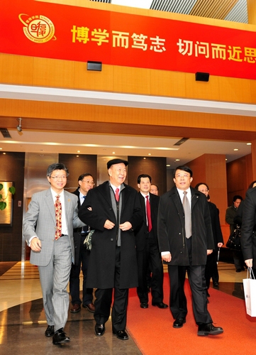 随后,吕志和校董一行前往我校管理学院参观访问。陆雄文院长向来宾全面介绍了管理学院的现状以及未来在科研、人才等各方面的发展规划。吕志和校董则与大家分享了多年管理的成功经验和体会,表示将对管理学院继续给予关注和支持。