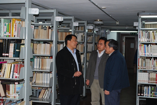 2012年3月20日下午,朱之文书记一行到图书馆调研,听取了工作汇报,考察了文科流通、报刊、参考咨询和采编等部门和各阅览室,并与馆领导班子进行了座谈。