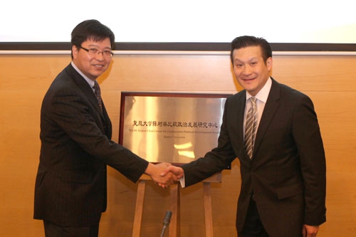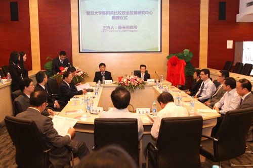 新闻中心讯 5月4日,复旦大学陈树渠比较政治发展研究中心揭牌仪式在复旦大学美研中心隆重举行。该研究机构由香港宝声集团董事长陈耀璋先生为纪念其父陈树渠(原复旦大学政治学系教授)博士,于2011年11月捐资建立。