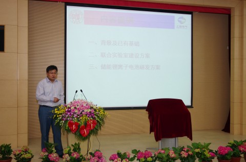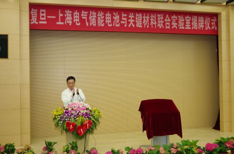 联合实验室主任、复旦大学新能源研究院余爱水教授首先对联合实验室成立背景、工作目标任务及其未来展望作了介绍。复旦大学在电化学领域,特别是电化学储能领域科学研究有着悠久的历史。2008年10月成立、依托于先进材料科技创新平台的新能源研究院在化学储能研究方向着重进行化学电源,超级电容器以及燃料电池的工作,在储能材料及其体系方面取得了一些有影响的成果,其中,碳包覆纳米钛酸锂材料通过了教育部组织的科技成果鉴定,具有完全的自主知识产权,磷酸铁锂正极和石墨碳负极材料也正在准备产业化生产。为适应大容量电网储能系统研究的需要,加快推进锂离子电池储能项目的研发进度,围绕新能源并网及电网级化学储能应用领域的各种关键问题,研发大容量和长寿命高效电化学储能系统,上海电气集团与复旦大学合作,成立复旦-上海电气储能电池与关键材料联合实验室,以综合利用双方的优势互补,瞄准国际电化学储能领域的最新发展动向,研究开发具有潜在应用价值的新型化学电源体系及材料,推进锂离子电池储能项目的研发进度,实现原始创新-基础研究-产业化示范应用的过程,并最终实现储能电池的商业化应用。联合实验室的成立将提升复旦大学在储能电池及其关键材料领域的研发水平及其在国际、国内的影响力。