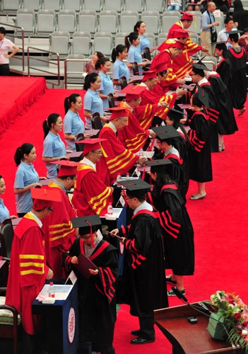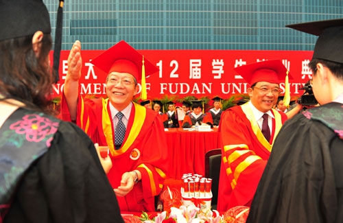 新闻中心讯 6月29日上午,复旦大学2012届本(专)科毕业典礼暨学位授予仪式在复旦大学正大体育馆隆重举行。3500多名2012届毕业生,近400名教师与中学校长代表和近千名家长,共同见证了这一庄严的时刻。校长杨玉良、校党委书记朱之文及其他校党政领出席了当天的毕业典礼。