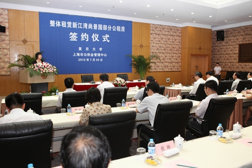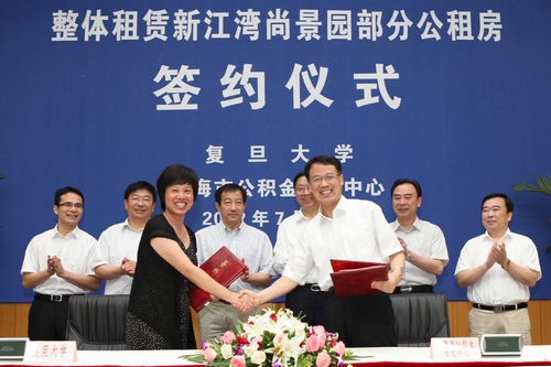 7月30日,整体租赁新江湾尚景园部分公租房签约仪式在复旦大学逸夫科技楼举行。上海市住房保障和房屋管理局局长刘海生、上海市教育委员会副主任李瑞阳出席了签约仪式并致辞。