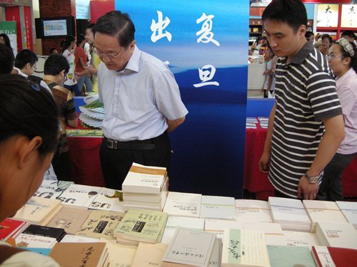复旦大学出版社送展的1326种图书,涵盖了高水准、高品质的学术著作和大众读物。书展期间,出版社展台人气爆棚,并深受上级领导的关注。中共中央政治局委员、中共上海市委书记俞正声,新闻出版总署副署长阎晓宏,中共上海市委副书记殷一璀,中共上海市委宣传部副部长朱咏雷等领导分别莅临出版社展台视察参观,对复旦社的出版工作给予充分肯定。