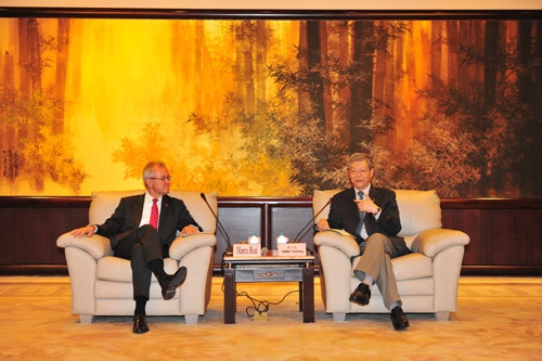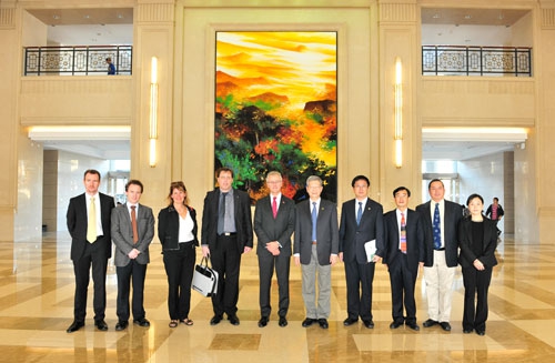 时值欧元现钞发行10周年,欧债危机阴霾依旧之际,2012年10月15日上午,欧盟委员会主管经济与金融事务的经济与金融总司司长马可•布提先生及欧盟驻华代表团经济金融处处长梅兰德(Melander)等一行6人访问了复旦大学。杨玉良校长会见了来宾一行。布提先生一行随后在外事处处长朱畴文教授和欧洲问题研究中心主任丁纯教授等的陪同下参观于复旦大学举办的欧元展。