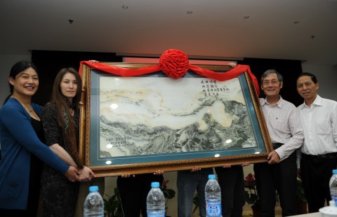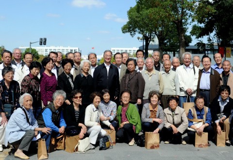千万里山水挡不住校友思家情,数十载风云掩不住母校牵挂意。会后两届校友包括桑国卫副委员长在志愿者的陪伴下一同参观了药学院张江新校区,并在药学院科研楼前合影留念。